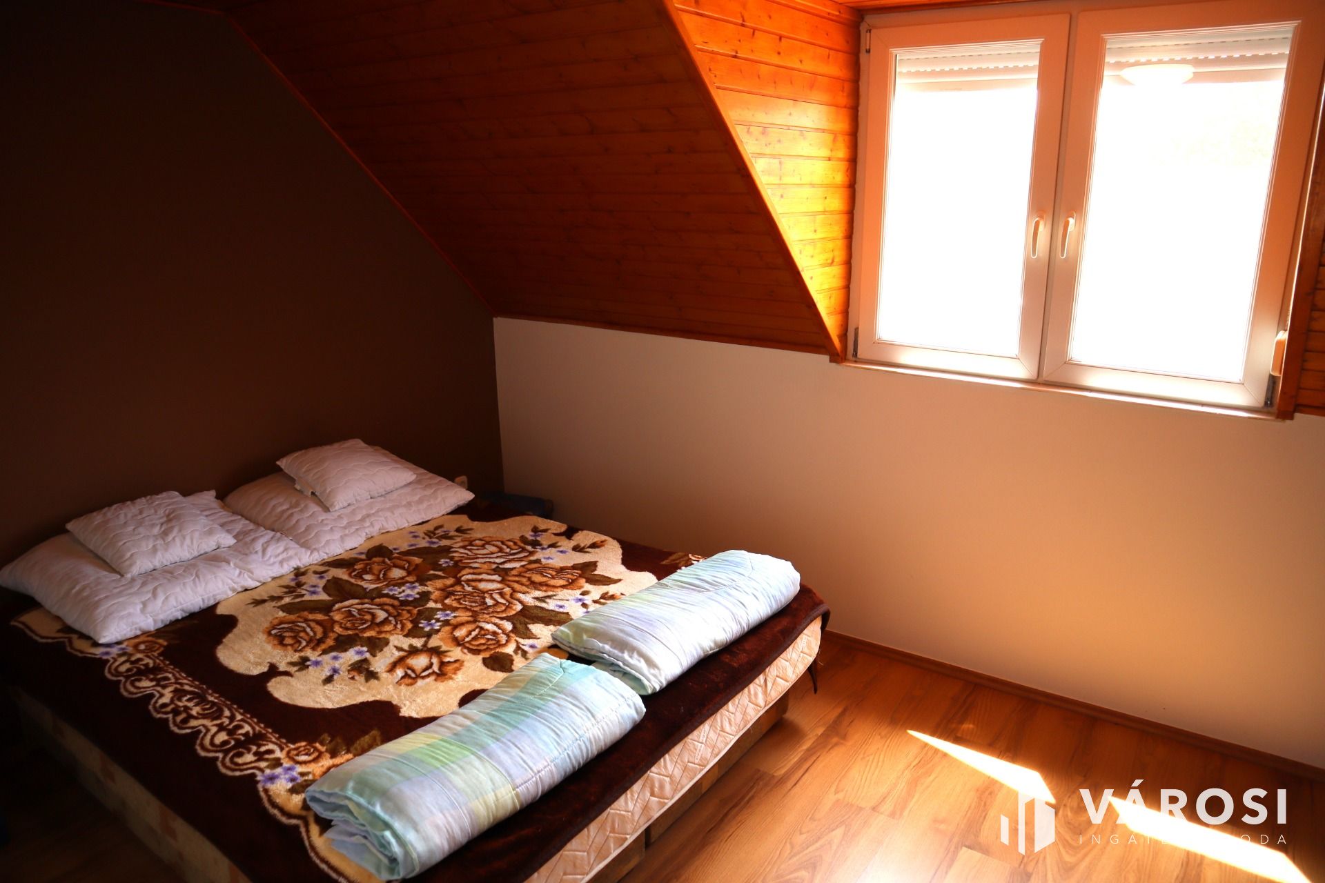 A 2004-ben épült két szintes, szigetelt tégla építésű épület hasznos alapterülete 400 m², amely egy 800 m²-es önálló parkosított telken helyezkedik el. Az ingatlan kiváló állapotban van, a földszinten két 100 m²-es apartman (egyenként 2 hálószoba, és egy nagy nappali) az emelten pedig szintén két 100 m²-es 3 szobás tágas apartman várja a pihenni váró vendégeket. Minden egységhez tartozik egy konyha, és egy zuhanyzós fürdőszoba is.