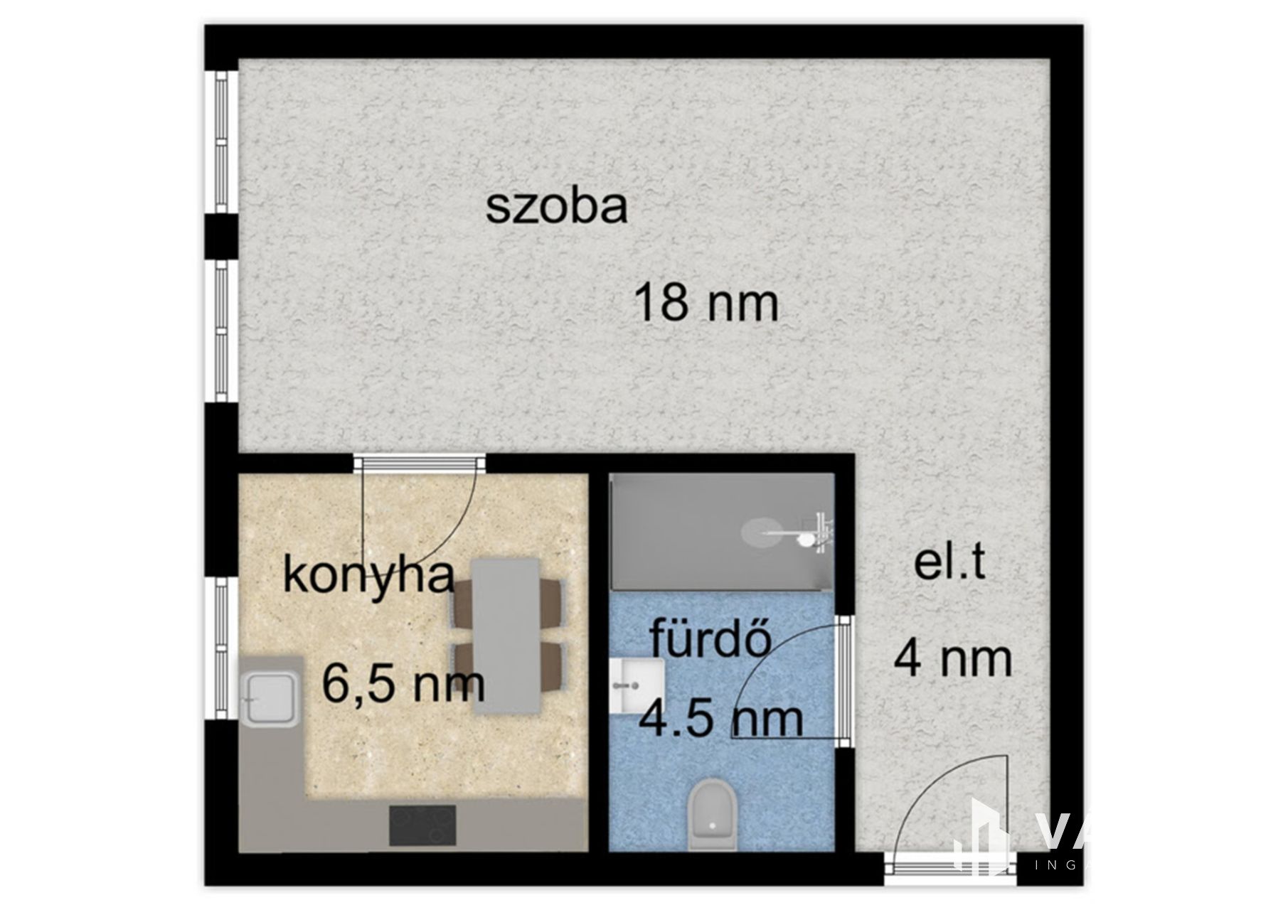 - Szoba,fürdő,konyha.