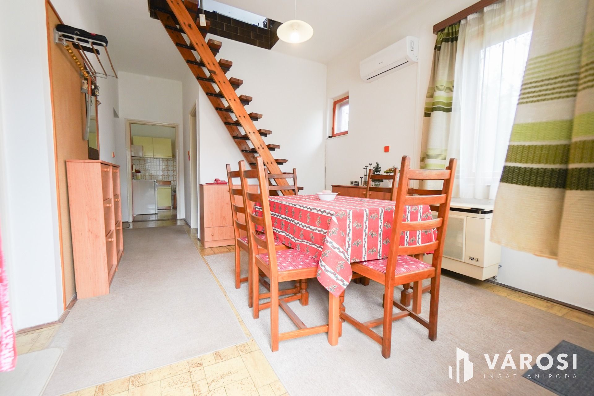 A ház 3 szinten helyezkedik el melyekből a földszinti és a tetőtéri egység belső lépcsővel össze lett kötve.