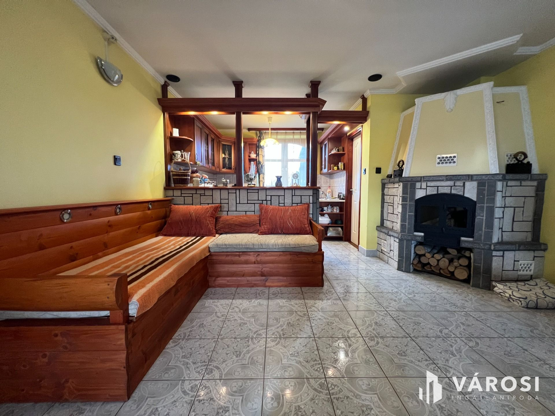- amerikai konyhás nappali-étkező, kandallóval