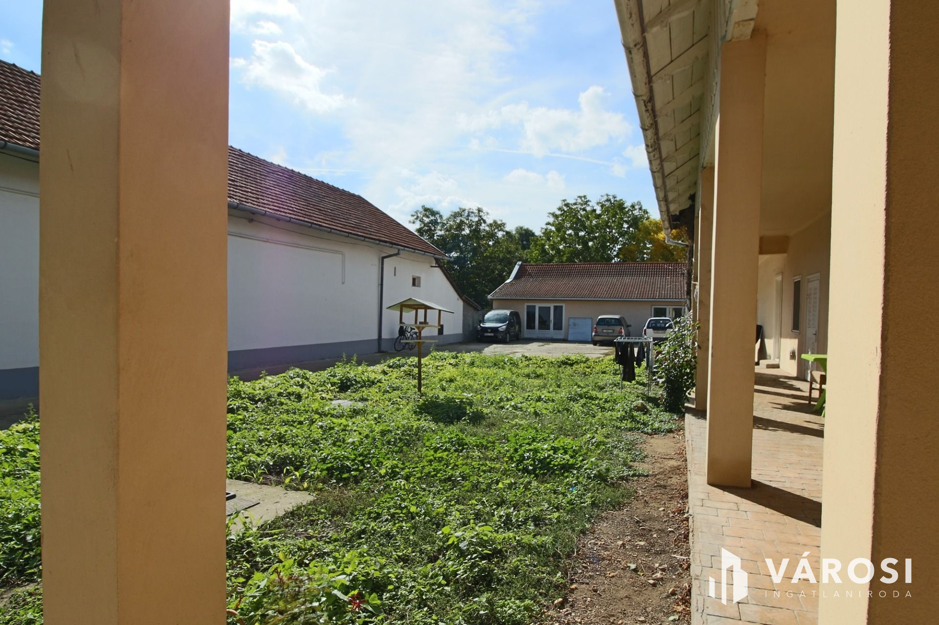 Az udvar nagyobb része betonozott, több autó parkolására alkalmas.