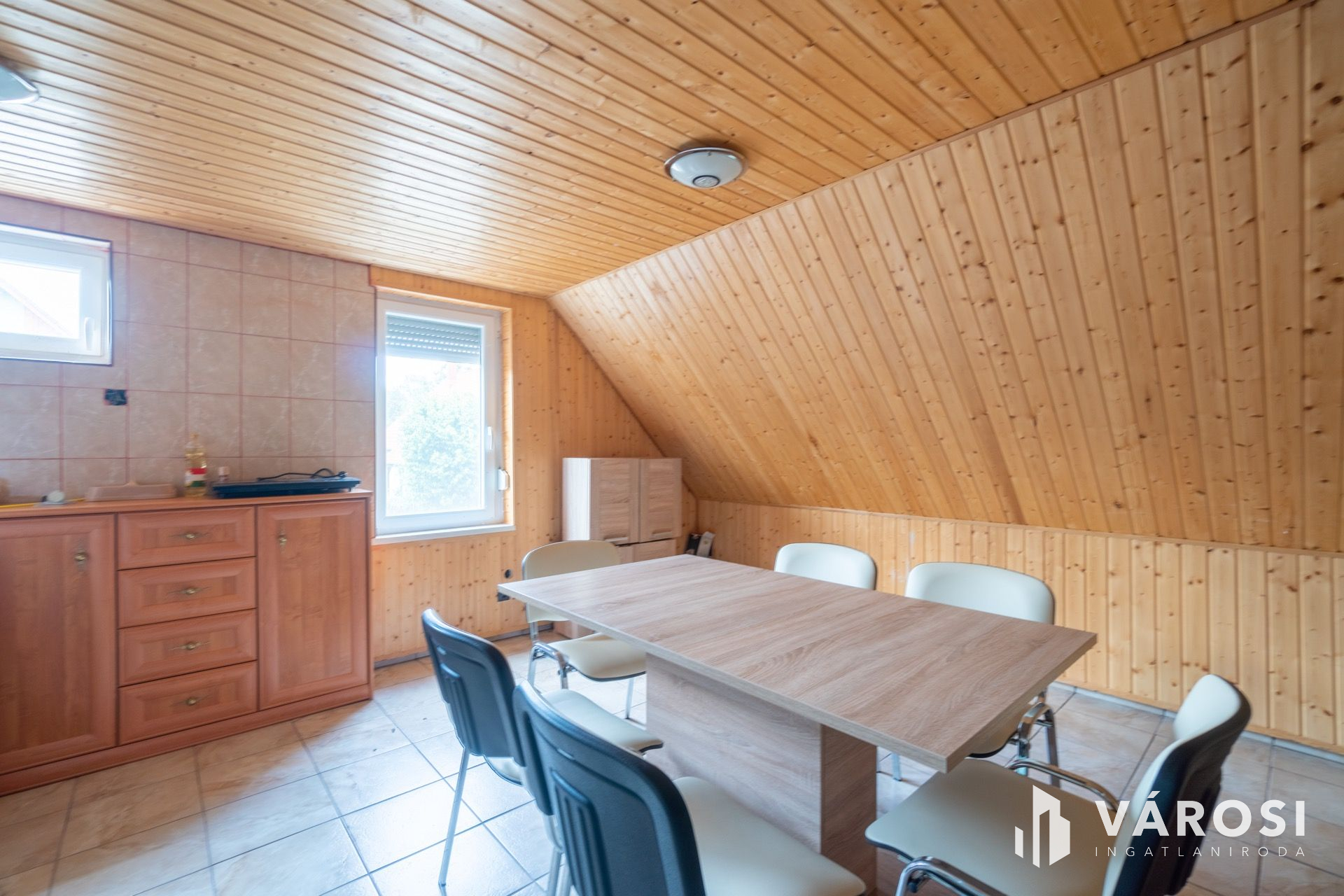 The separately formed, 120-sqm mansard is actually a totally renewed flat having two rooms, a bathroom and a spacious kitchen.
