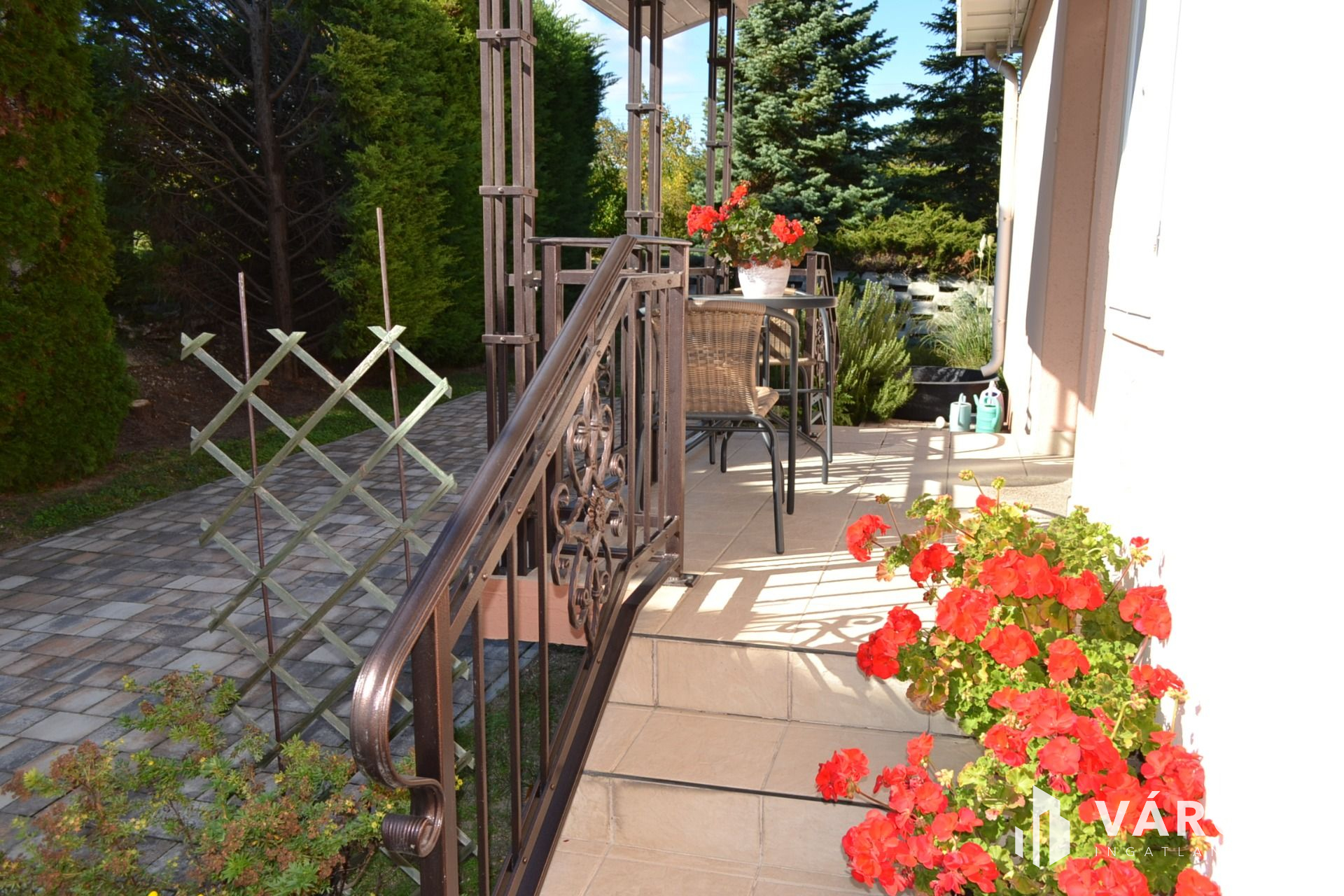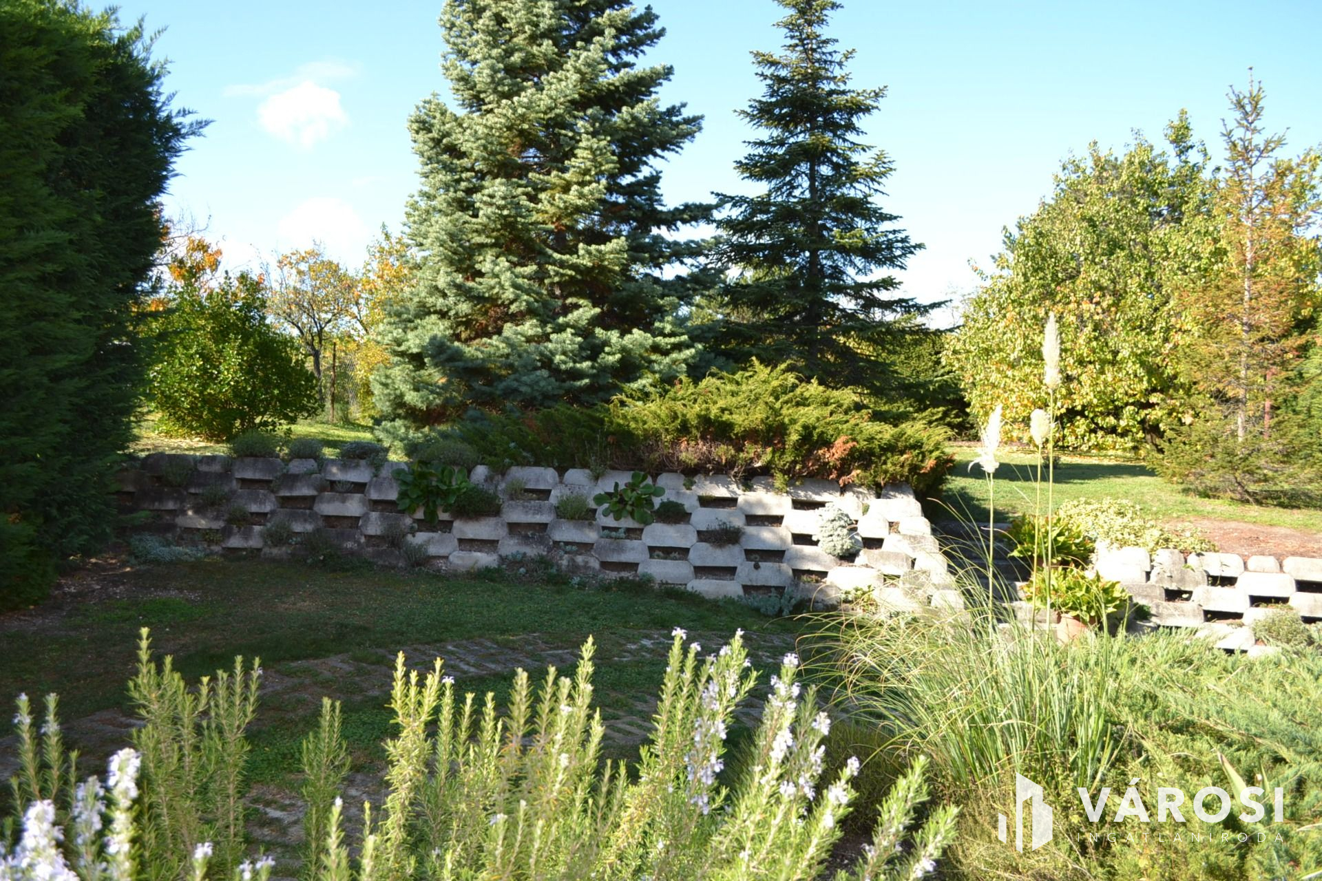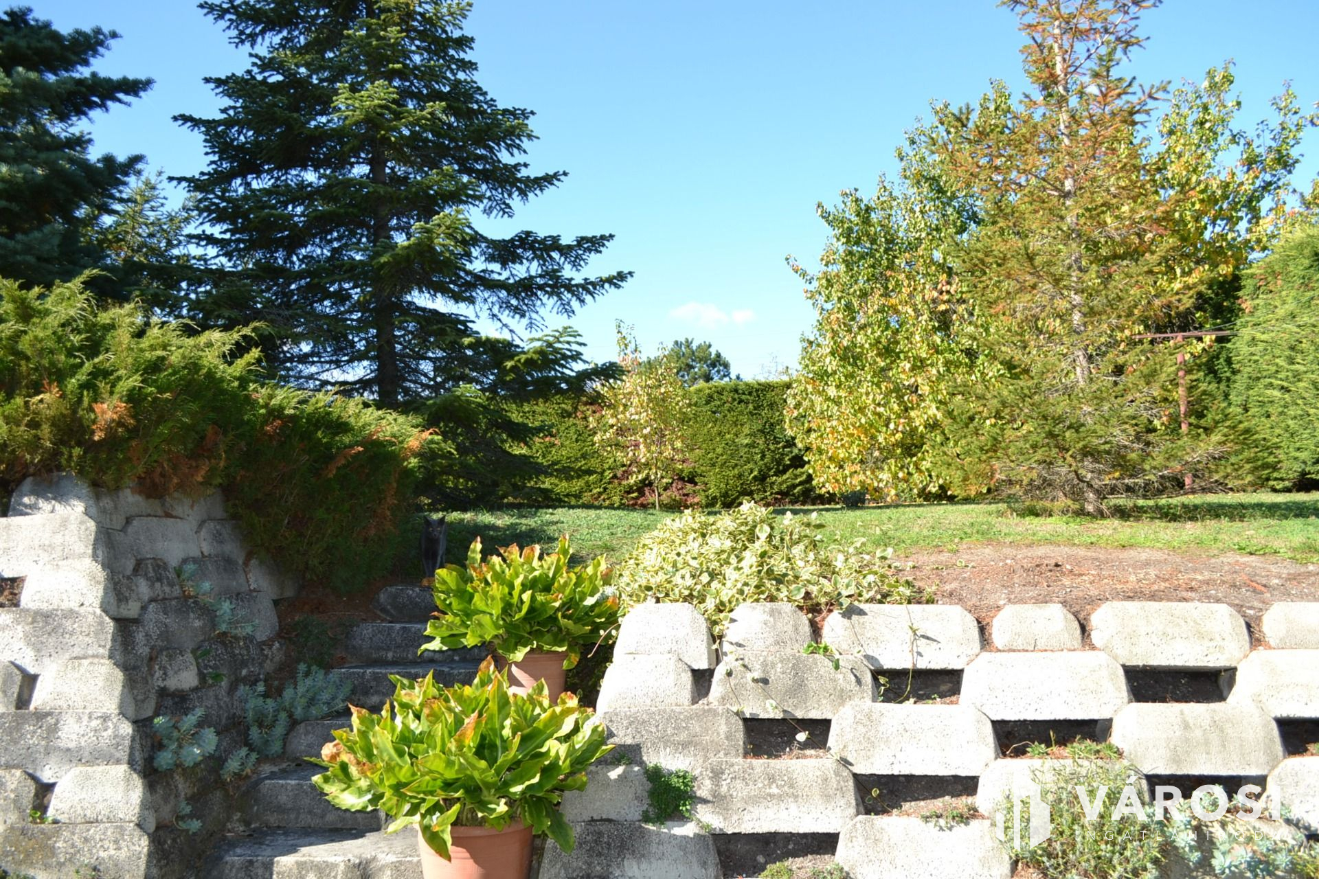 851m2-es telkén különleges, szépen ápolt növényekkel és gyümölcsfákkal.