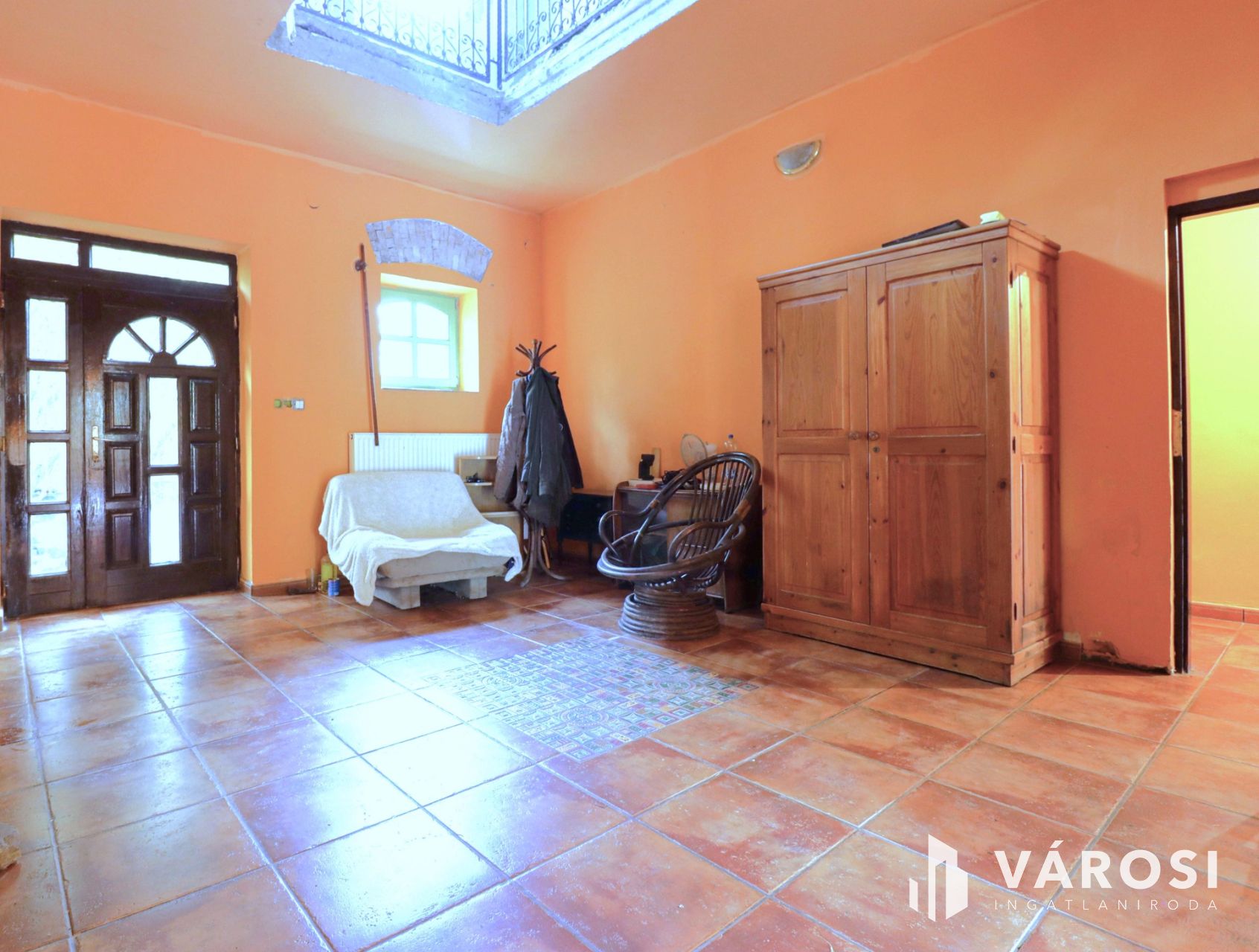 A folyosó, körfolyosó, szobák, fürdőszoba falai, burkolatok még felújításra várnak.