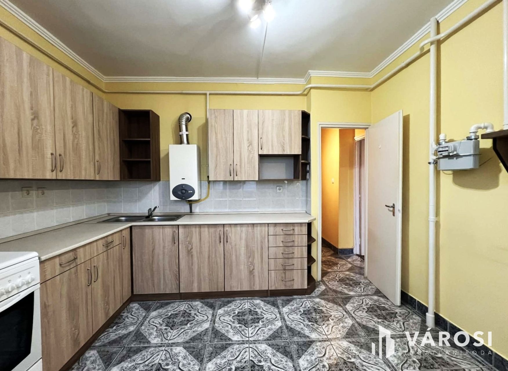 • Tágas konyha beépített bútorral + kamra