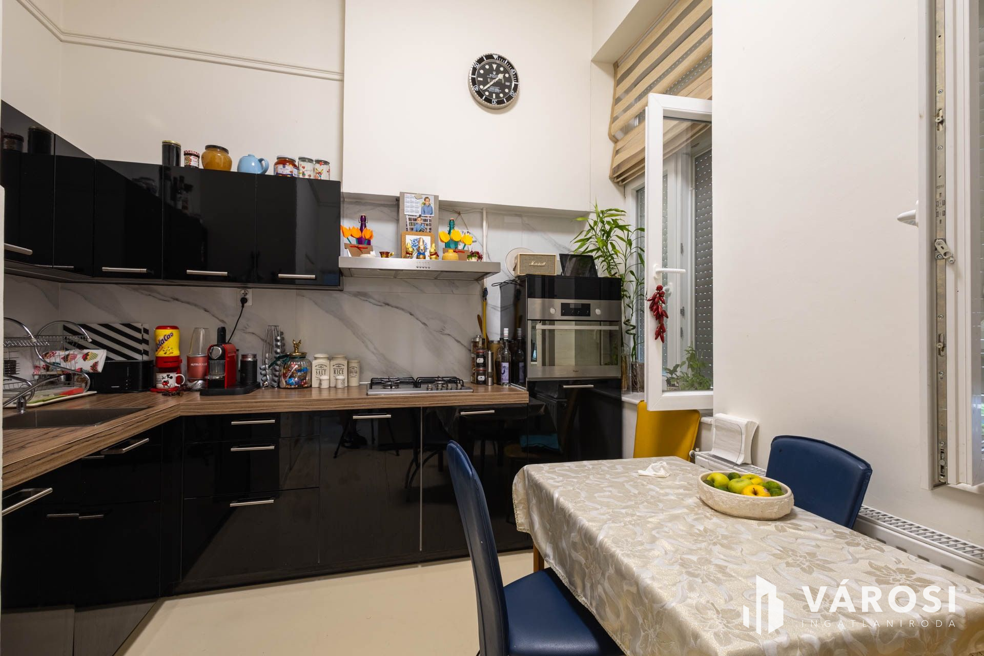 A felújítás továbbá kiterjedt a villanyvezetékek és a burkolatok cseréjére is, és új konyhabútor került beépítésre.