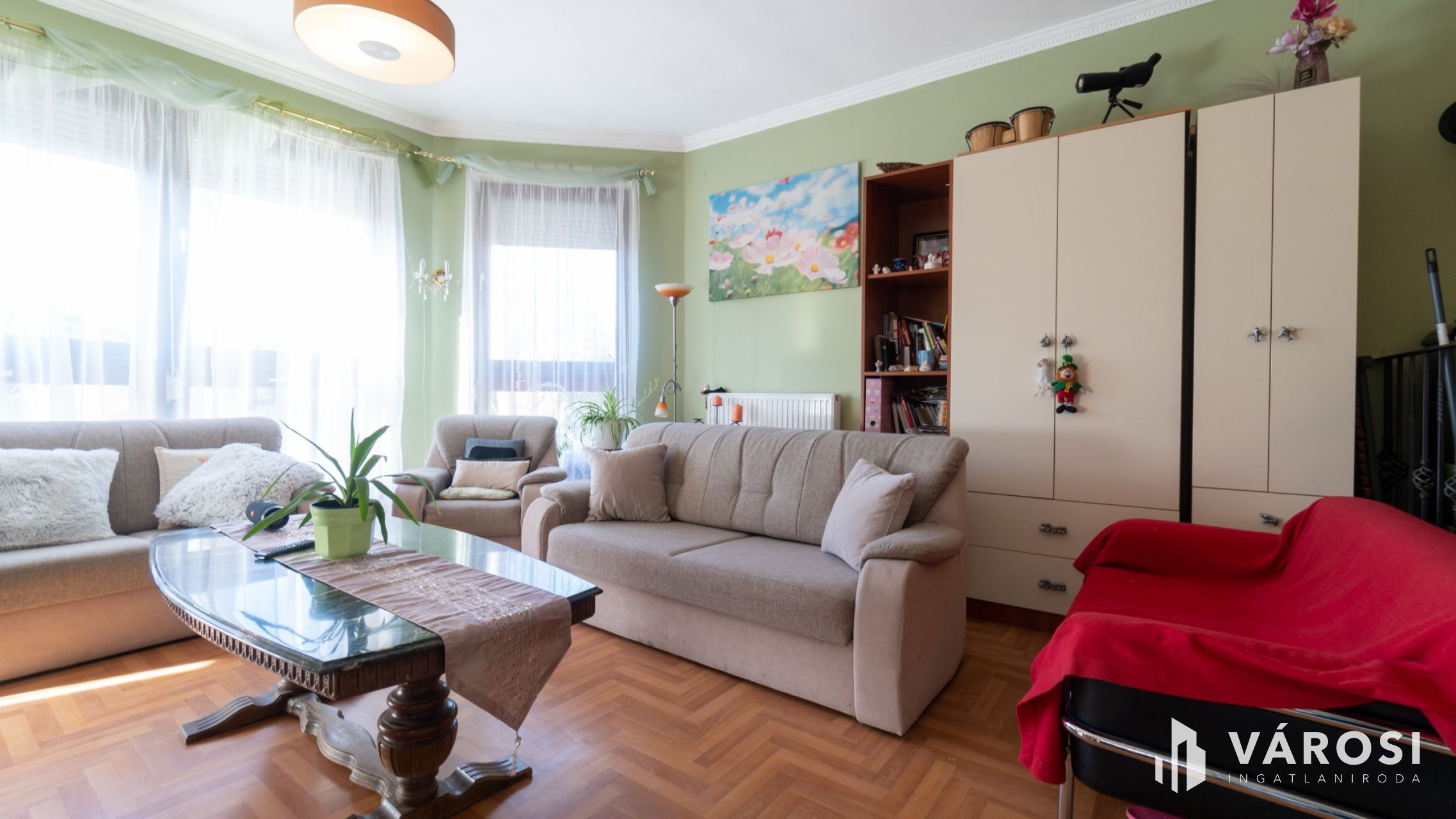 A 9 szoba és 2 nappali mellett 5 fürdőszoba található az épületben, így kényelmesen elfér itt egy nagyobb család is. Az ingatlan egy csendes utcában helyezkedik el, így a nyugodt pihenés biztosított. A ház felszerelt, jó közlekedéssel rendelkezik. A nyílászárók egy része műanyagra cserélt, a másik része fa, mindegyik redőnnyel felszerelt. A fűtés gáz cirkó kazánnal történik, radiátoros hőleadással. A kellemes hőérzetet a meleg nyári napokon 2 darab klíma biztosítja.