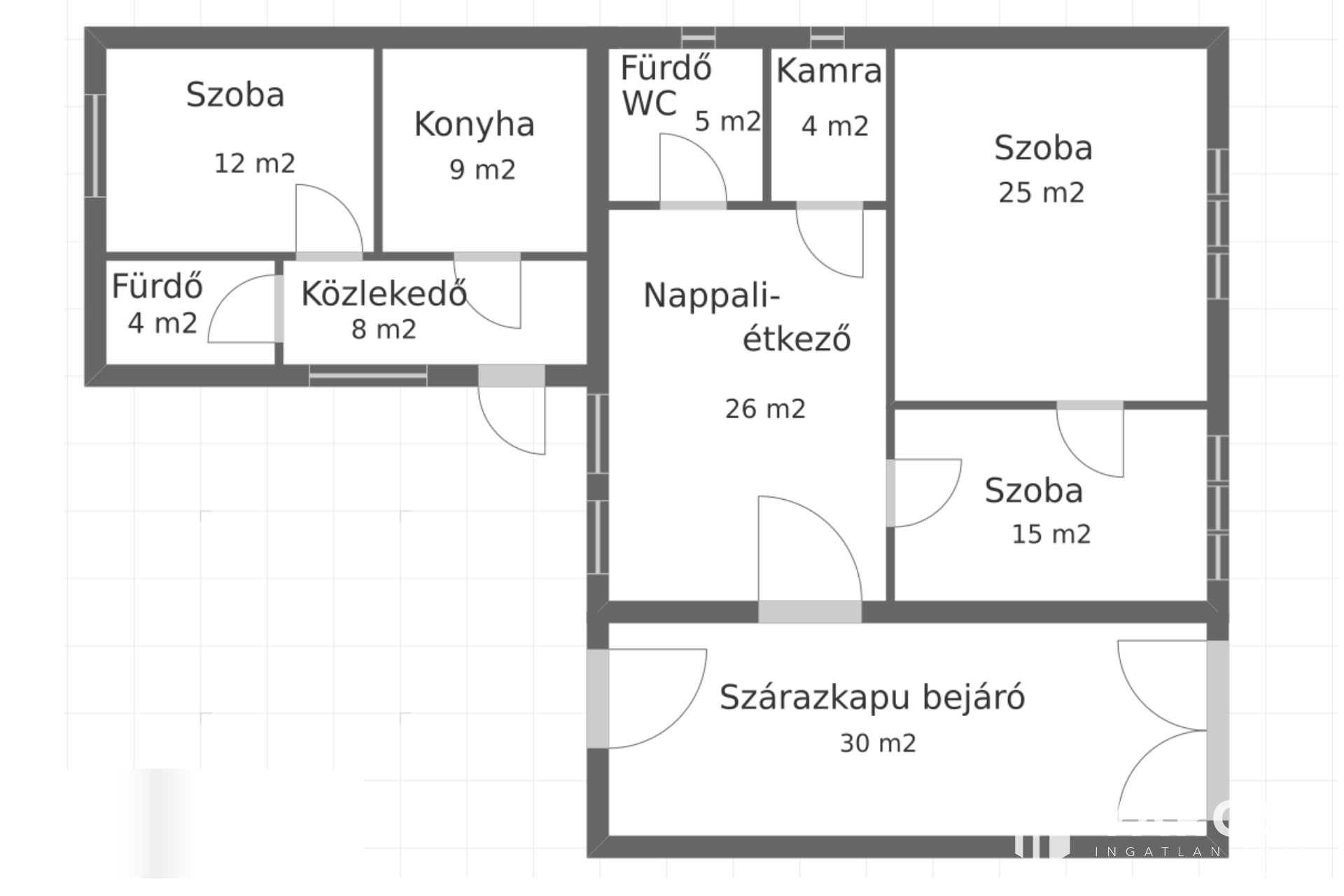 Hasznos alapterülete 108 m2, melyből a főépület 75 m2, a kisebb lakás pedig 33 m2. A két épületrész közötti átjárót a tulajdonos pár éve befalazta, de bármikor újra nyitható.