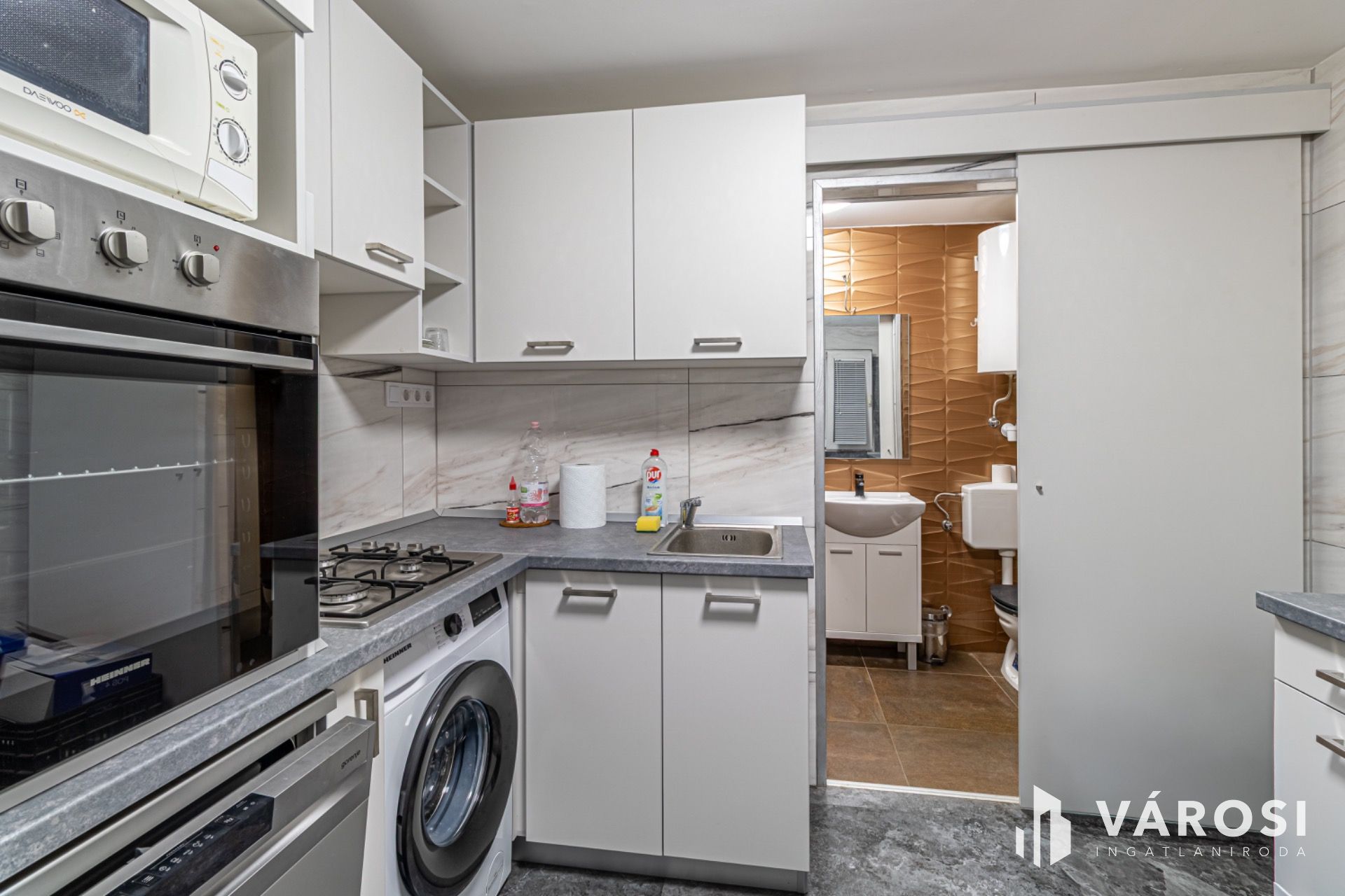 A kisebb garzon rész szobájához és egy étkezővel egybekötött konyhához MODERN gáz-cirkós és padlófűtési rendszer társul. A HŐSZIGETELT műanyag nyílászárók és a 2 beépített KLÍMABERENDEZÉS mind növelik az itt élők kényelmét.