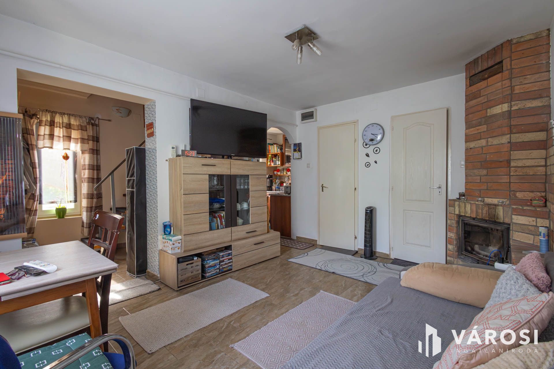 A földszinti részen egy hangulatos nappali, konyha, fürdőszoba és különálló wc kapott helyett. Az új nyílászáróknak, az új villamoshálózatnak köszönhetően komfortos és energiatakarékos lakhatást biztosít. A nappaliban hűtő-fűtő klíma biztosítja a komfortos hőmérsékletet, viszont a hideg téli estéken a kandallóba begyújtva hallgathatjuk a fa ropogását is. Minden ablak szúnyoghálóval ellátott, így a nyári estéken zavartalanul élvezheti a friss levegőt.