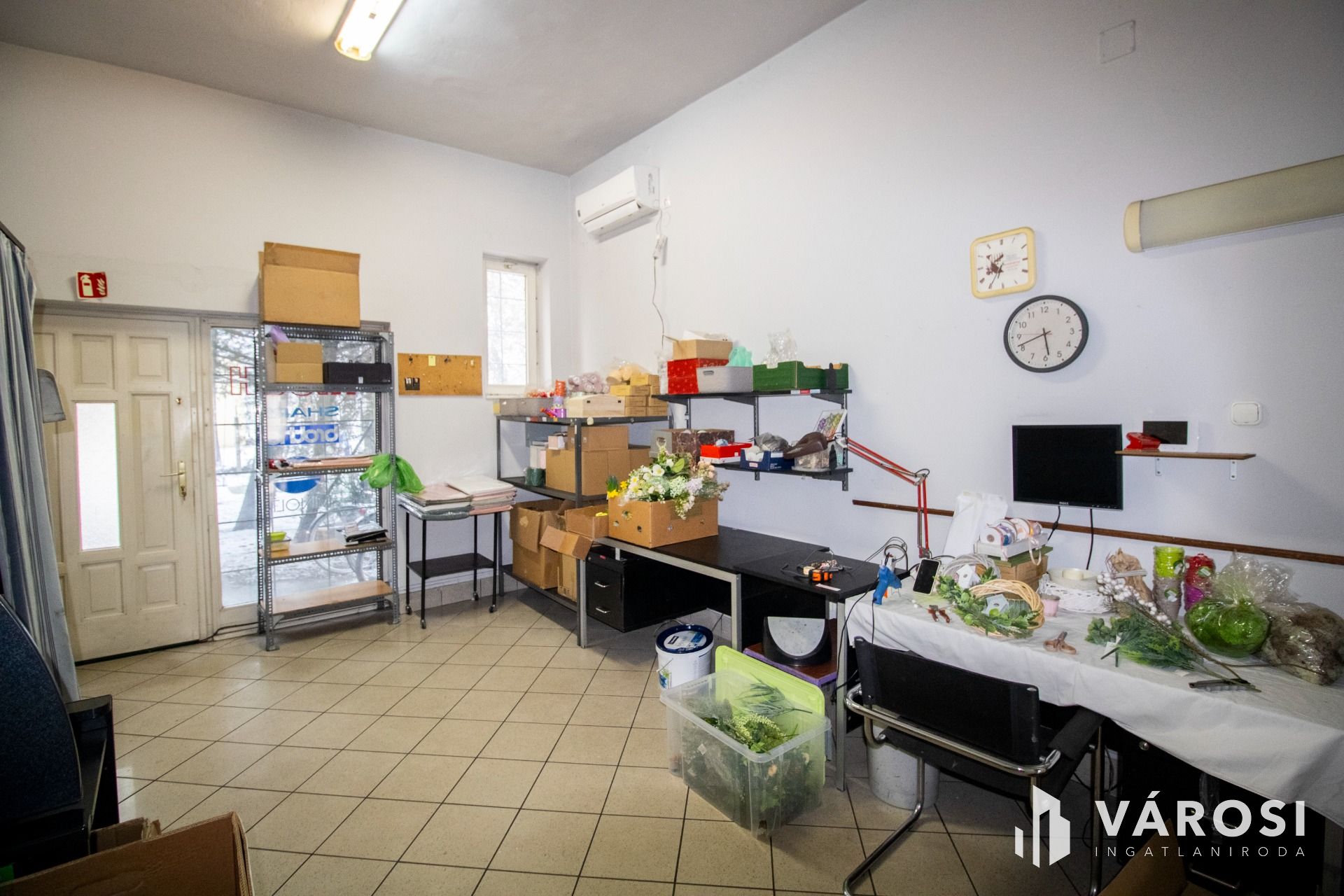 A hátsó üzlettérből nyíló külön raktár – amely igény szerint teakonyhává alakítható – tovább növeli a használhatóságot, így az ingatlan hosszabb ügyfélfogadásra, napi szintű működésre is komfortosan alkalmas. A mosdó kézmosóval és melegvízzel rendelkezik, az elektromos hálózat háromfázisú, 3×16 amperes kapacitással, amely számos vállalkozási forma számára elegendő.