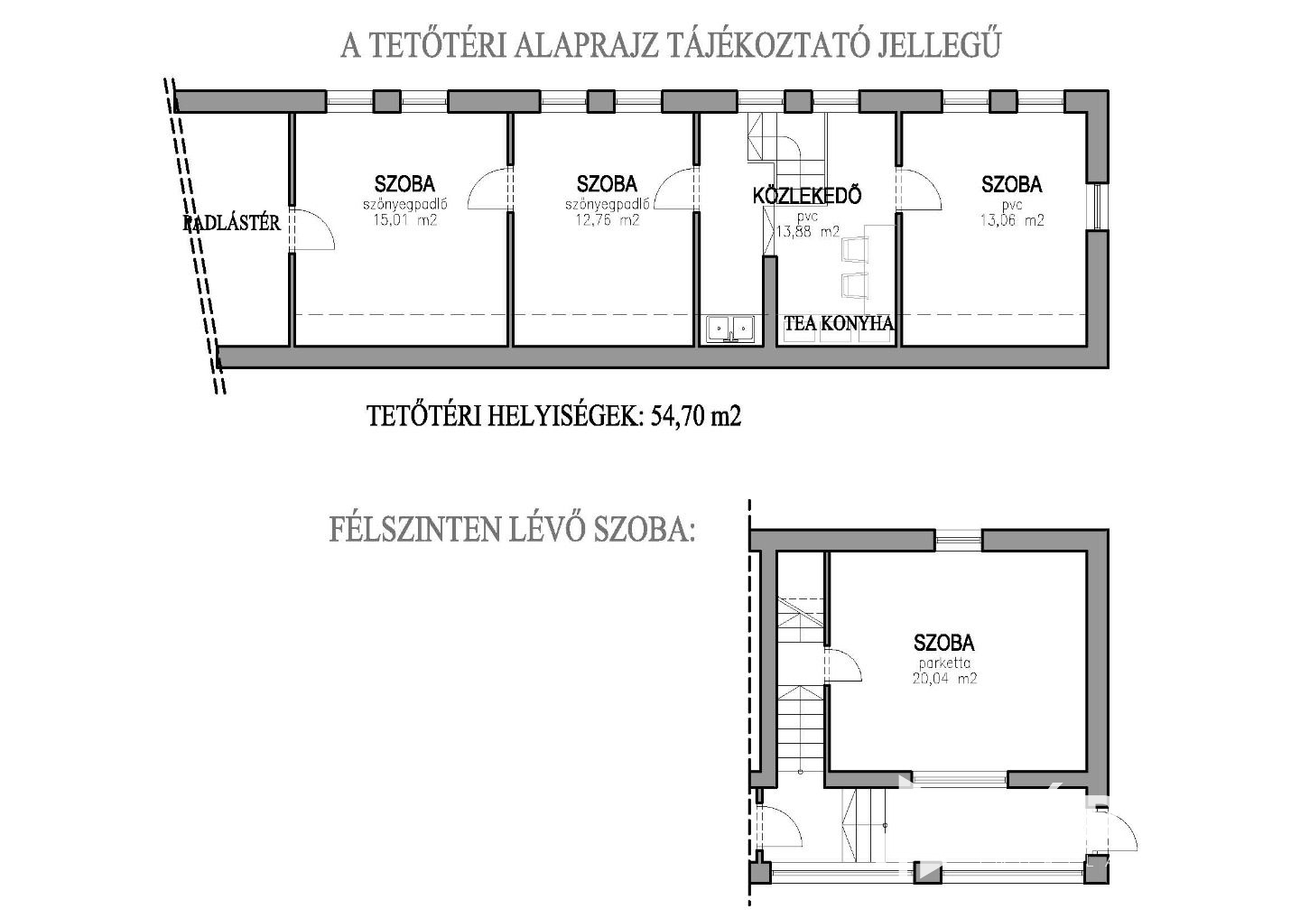 - félszinten található szoba: 20,00 m2