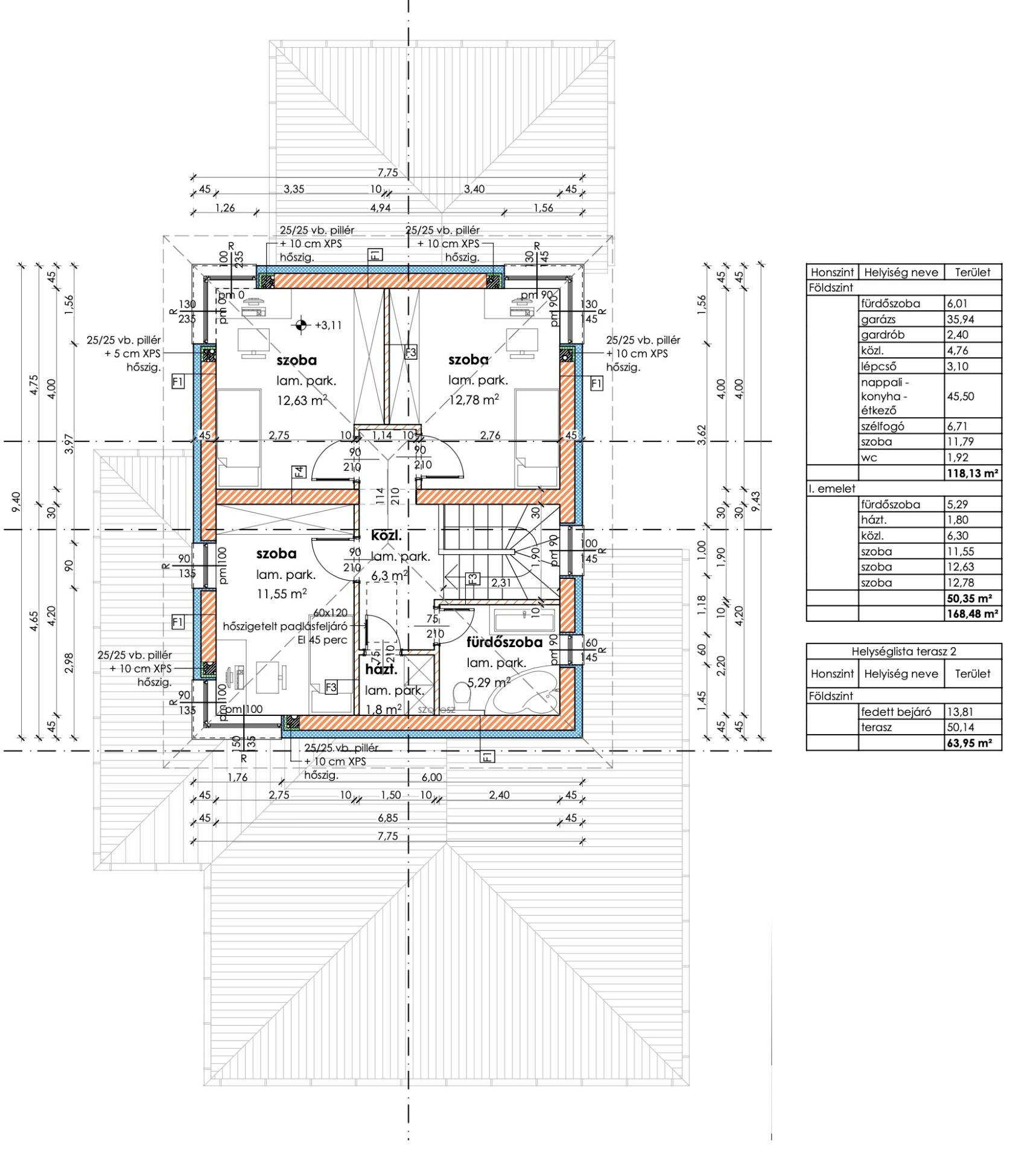 - nettó alapterület: 168,5 m2 + 13,8 m2 fedett bejáró + 50 m2 terasz