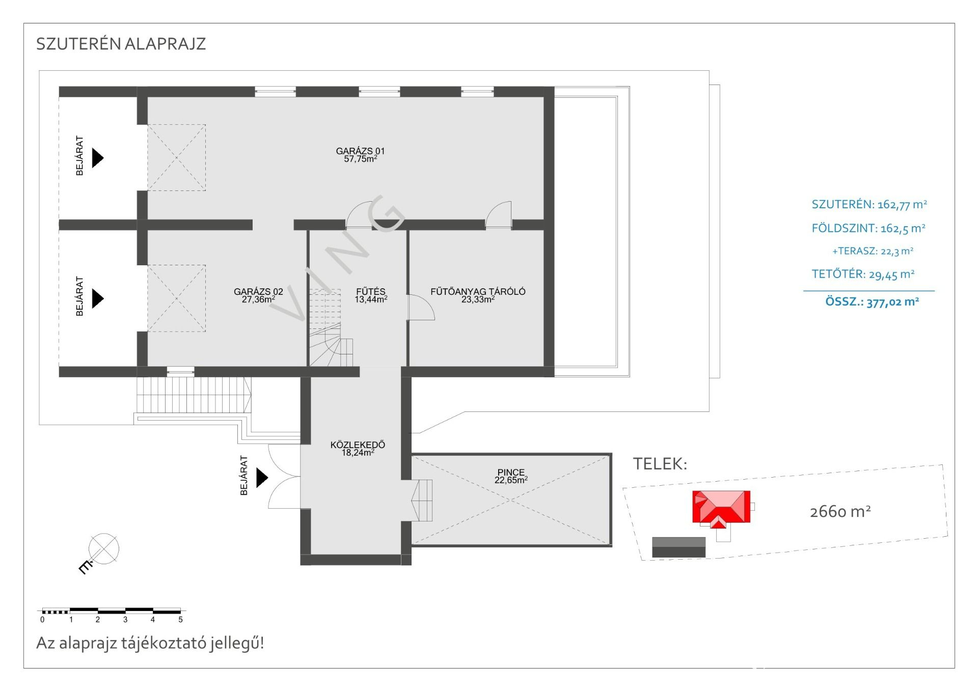 A 3 szintes 377 m2-es ház 2660 m²-es telken található.