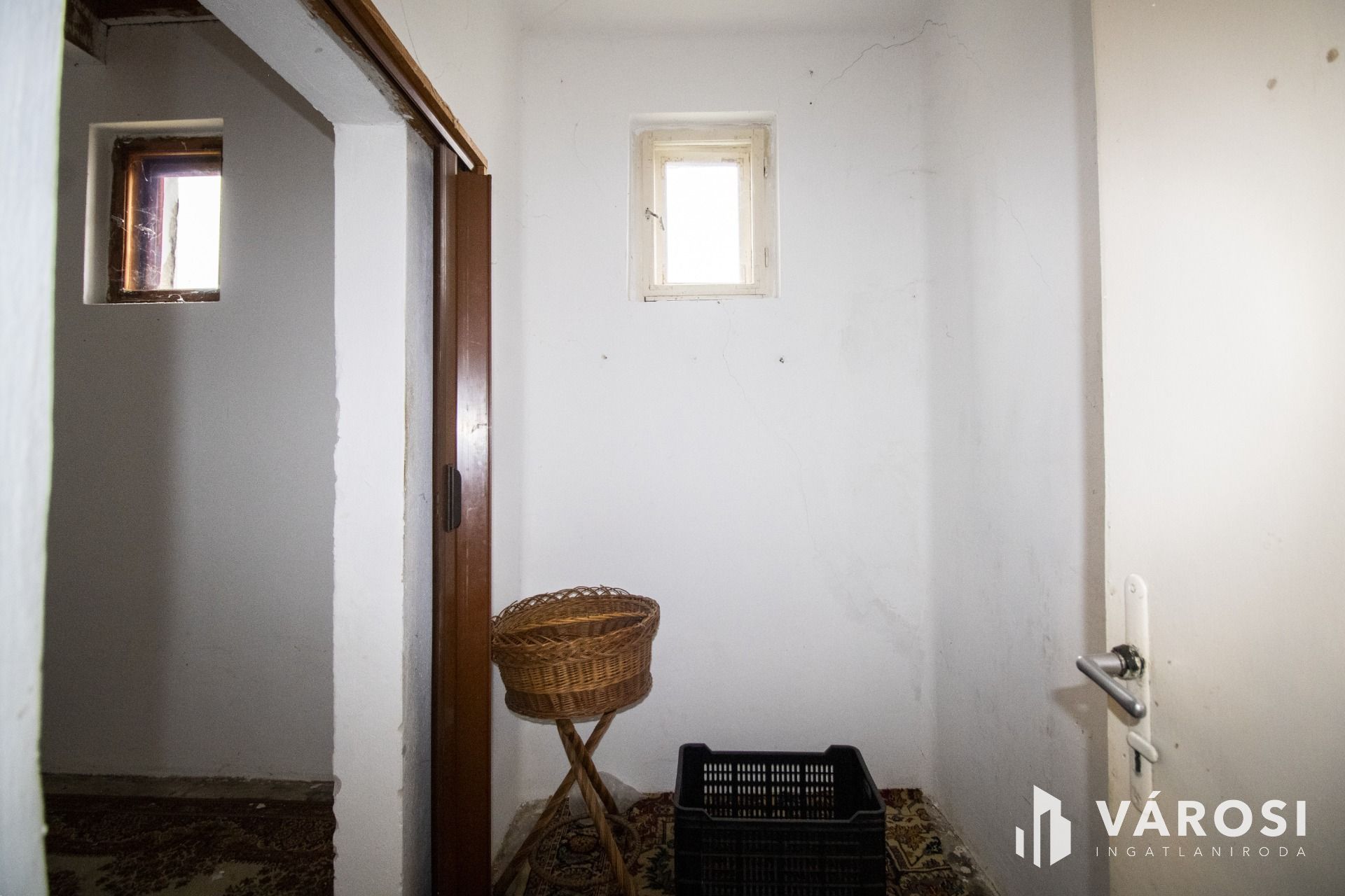 A ház oldalán egy fedett teraszról lépünk be, innen jutunk a folyosó/közlekedőbe. A közlekedőből balra nyílik a külön WC és a fürdőszoba, amelyben kád és zuhany is van, jobbra találjuk az egyik lakószobát, szemben pedig a tágas, világos konyha–étkezőt. A konyhából nyílik a másik lakószoba, valamint a spájz–kamra rész, ahonnan egy hátsó kijáraton át ki tudunk menni a hátsó udvar felé lévő kis teraszra. A kamra és spájz egybenyitásával, akár még egy plusz szoba is kialakítható, tehát az ingatlan bővíthető. A tetőtér beépíthető, így hosszabb távon is jó alap egy családi otthonhoz.