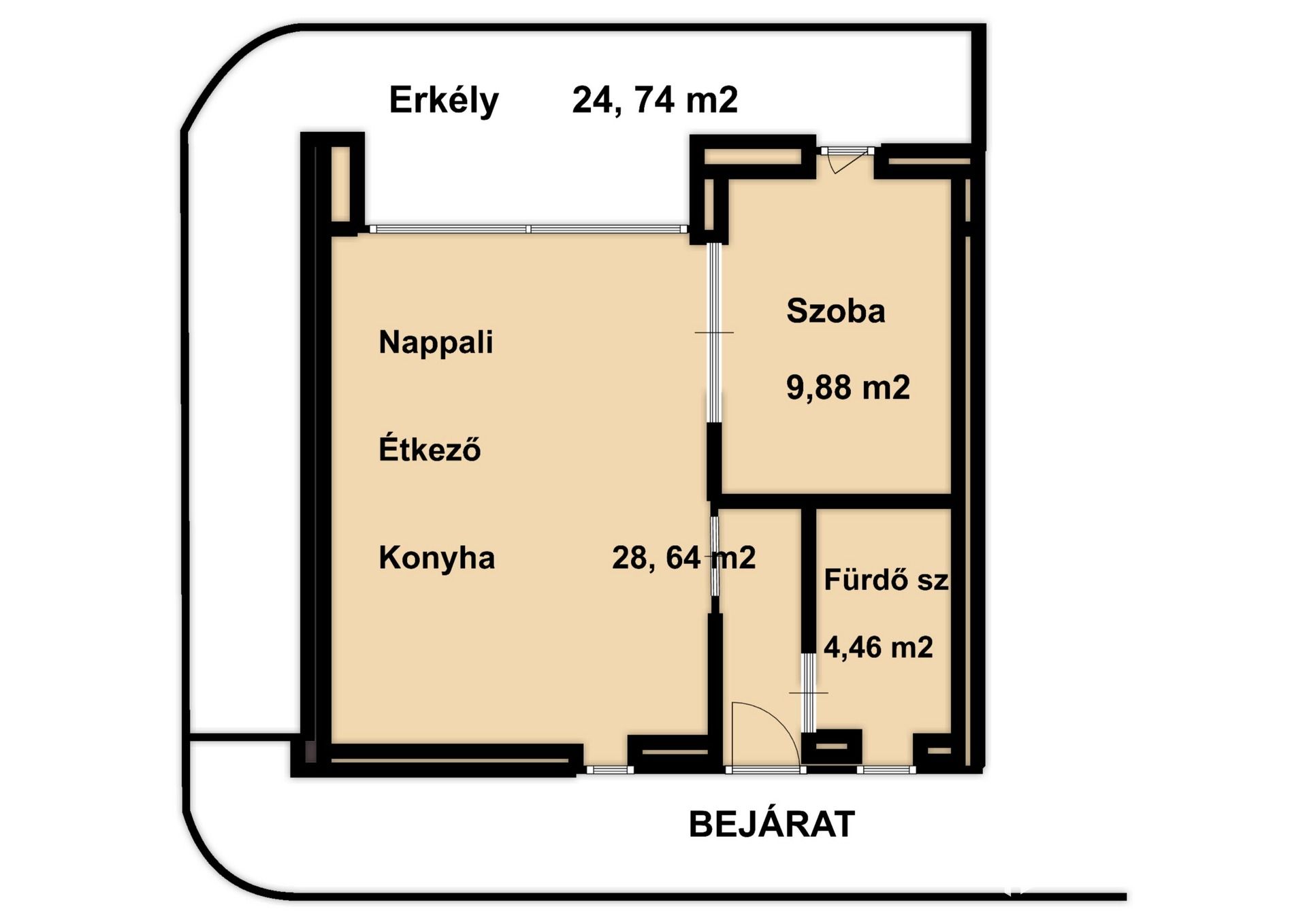 Nappalijában kialakítható (saját ízlésre formálható) konyhával, étkezővel.